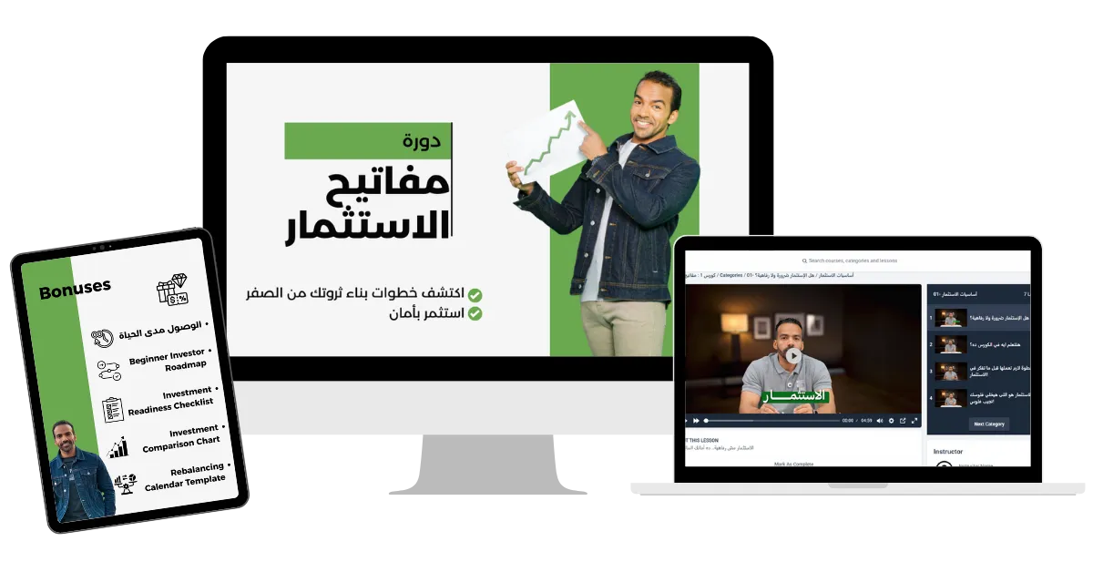 بنهاية الدورة، هتكون قادر تبدأ استثمارك الأول وأنت فاهم، مطمّن، وماشي بخطة واضحة